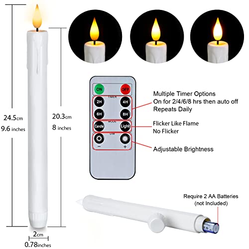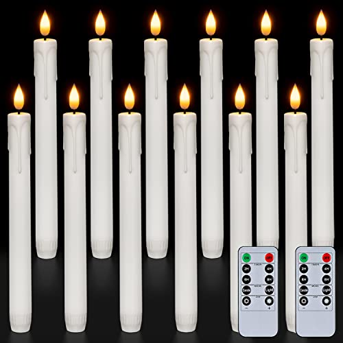 Homemory 12 Pcs Plastic Flameless Taper Candles with Remote Timer Dimmer, White Taper Candles Battery Operated with Flickering Flame Light Lifelike Led Candlesticks for Indoor Decoration 9.6 Inches