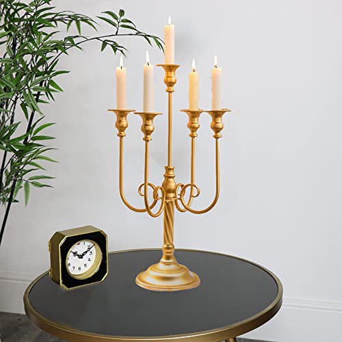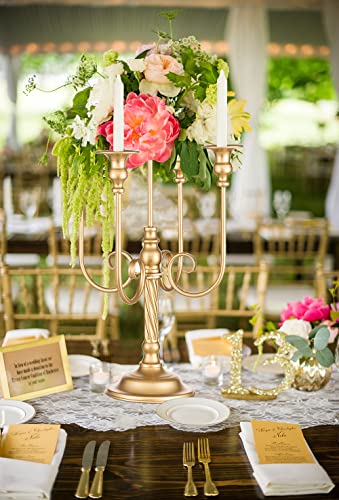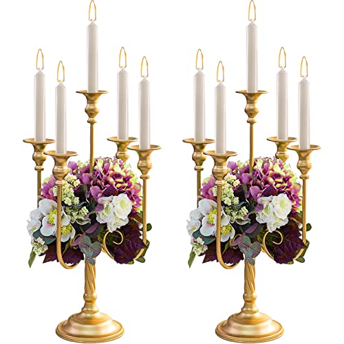 Metal Candelabra Gold Candle Stand 20in Tall, 5-Candle Candlestick Holder for Taper Candles, Candle Holder for Wedding Centerpiece Christmas Valentine Holiday Party Event Reception Decor, 2Pcs
