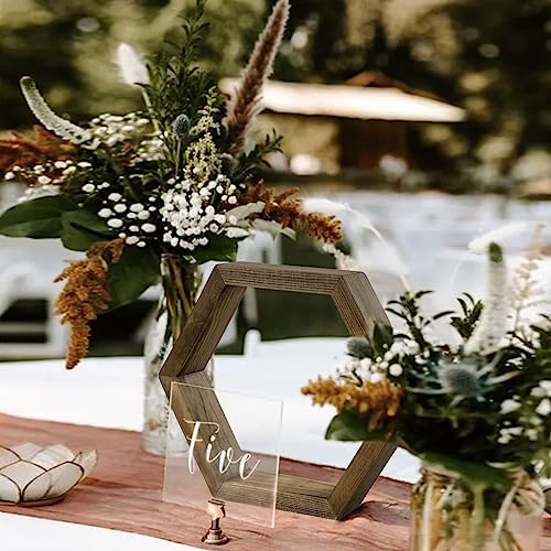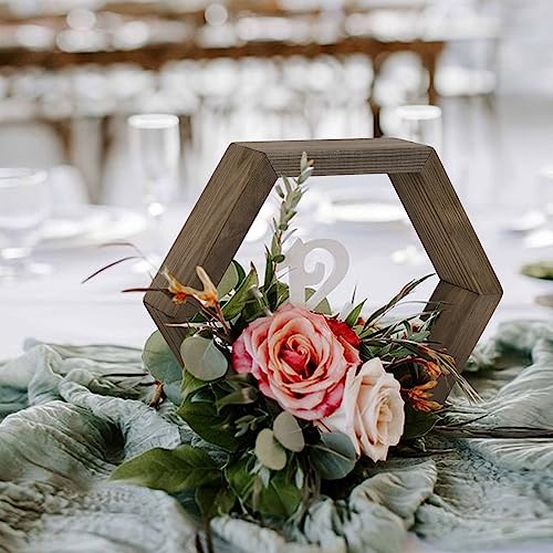 - Elegant Rustic Charm: Enhance your wedding or home decor with our exquisite Hexagon Wedding Lantern Centerpiece. This set includes 2 wooden lanterns, measuring W 9.56" x H 11". (Candles and flowers not included)