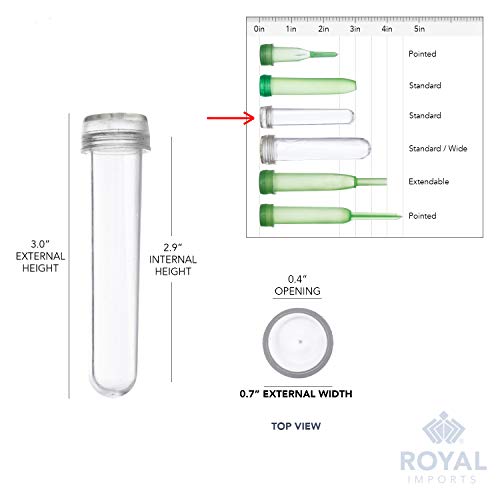 Details: These Royal Imports Clear Floral Water Tubes are molded from unbreakable polypropylene plastic, while the caps are made from soft, rubber-like polyethylene. The middle opening in the cap stretches, allowing for a single-stem floral item to be placed through it, forming a water-tight seal to keep this water vial from leaking. Caps are included with tubes! Pik tubes can be placed into soil or floral foam to create arrangements for use in your home, garden or as a gift!