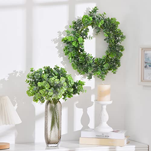 - Package Include: 12pcs artificial eucalyptus stems leaves. Each eucalyptus stem consists of 6 branches with about 72pcs eucalyptus leaves.
