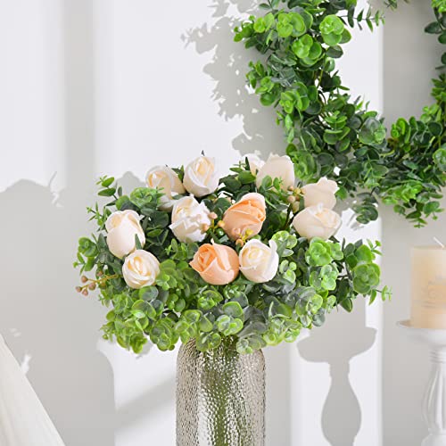 - Multifunctional Decor: Fake eucalyptus stems can be add these to all of the bouquets, such as wedding bouquet. Also can be used in vase, wreath, garland, and so on. These artificial flowers for displaying on dining table, arch, swag.