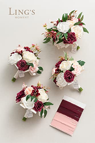 - Great Value: 9" maid of honor bouquet x1, 7" bridesmaid bouquet x3, may fit the number of the bridesmaids.Bouquet. Attending with 13-inch marsala and dusty rose chiffon ribbon. To prevent the ribbon from falling out of the bouquet during transportation, the ribbon has been fixed in advance with glue.