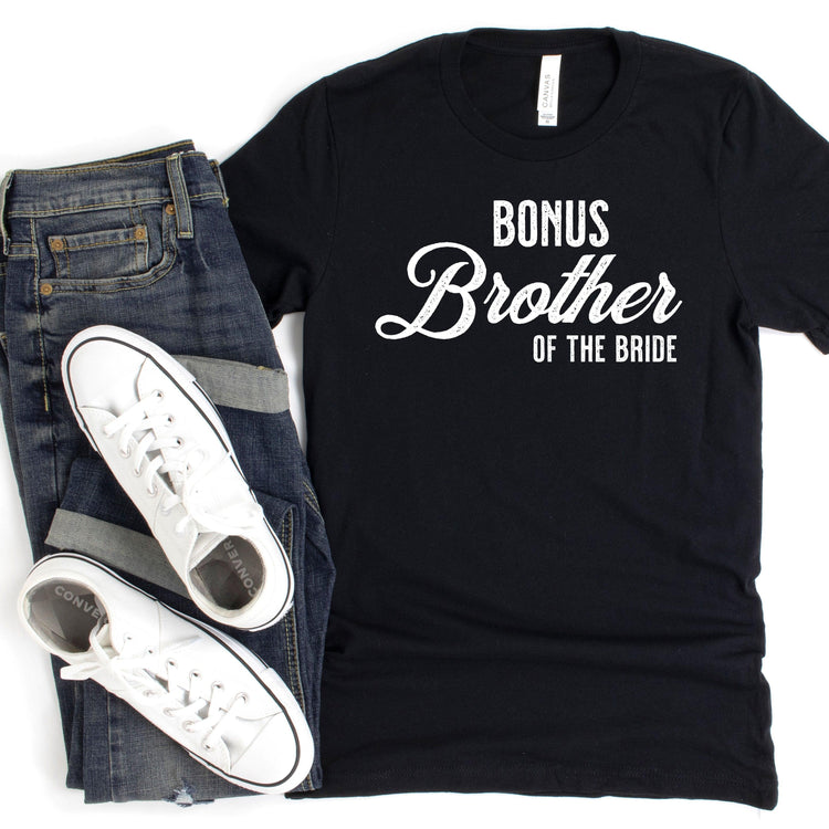 The Bride's step brother will love having a shirt that matches the rest of the wedding party! This distressed vintage tee is perfect for the Bonus Brother of the Bride. Made from super soft fabric, this shirt will be the perfect way to make him feel like part of the I do crew.