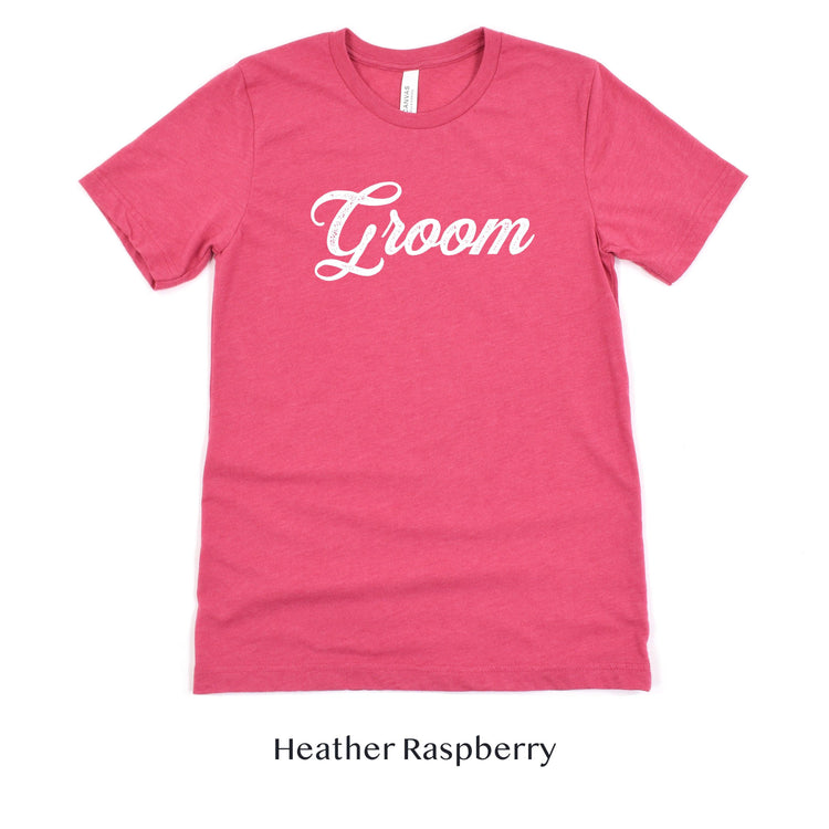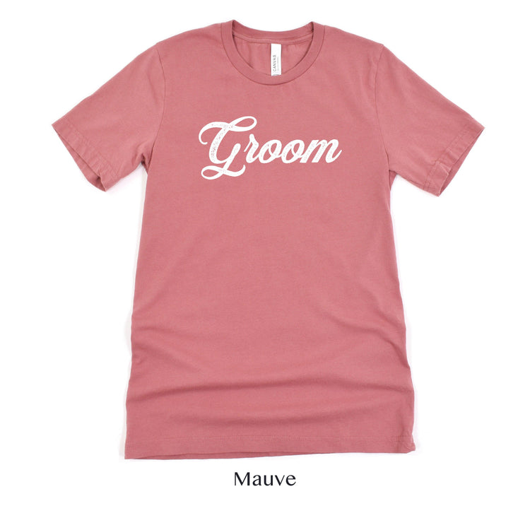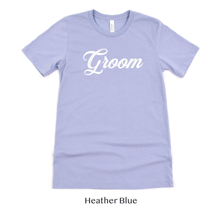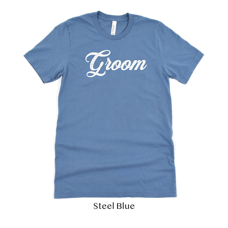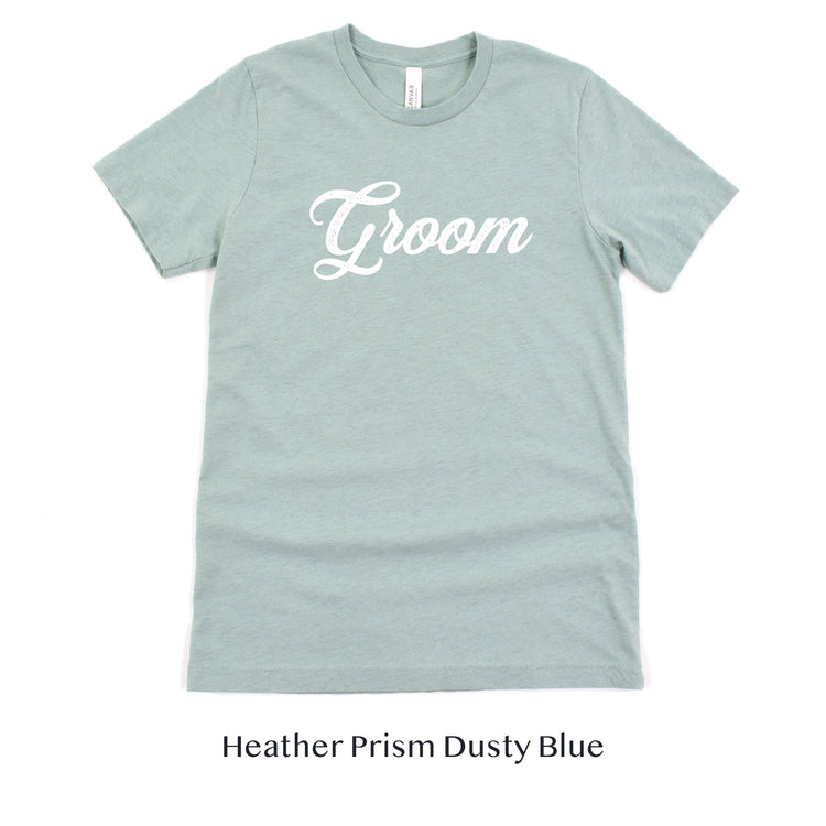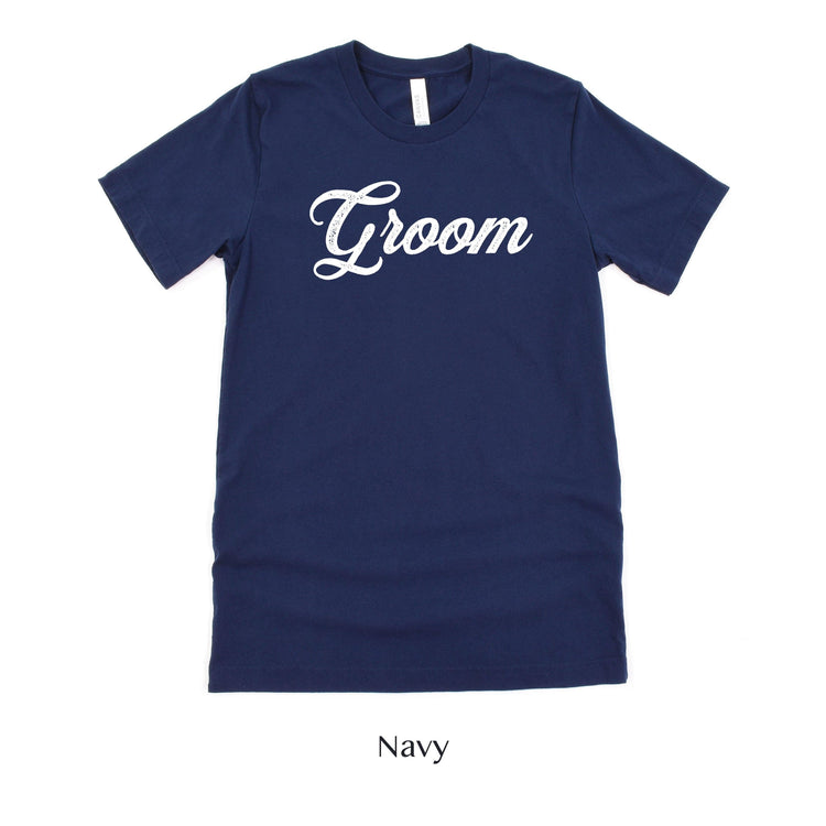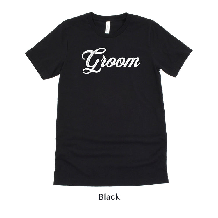 Your Groom will love this distressed and vintage design on this soft tshirt! Perfect as an engagement gift, or for his bachelor weekend getaway, this Groom's tee will make a statement.