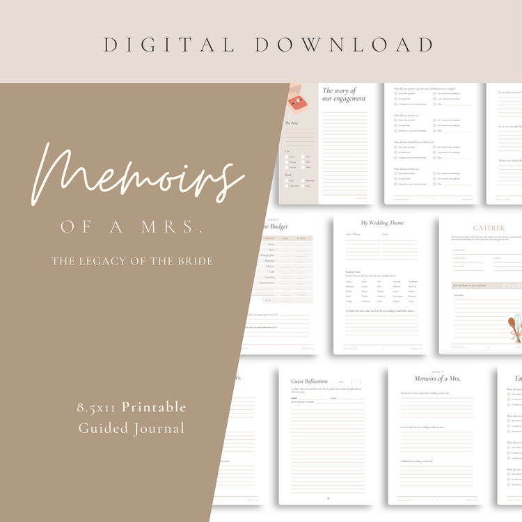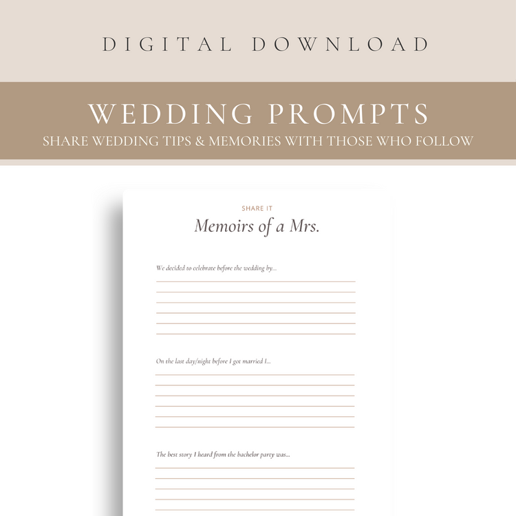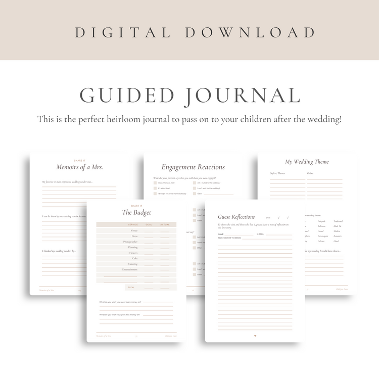Download and Print this bridal wedding journal (.pdf) to capture your love story and general details about your wedding that you can pass on to your children, your sister and anyone else who follows in your footsteps!