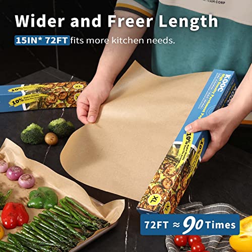 KOOC Premium 72-Feet Parchment Paper Roll - 15-Inch Width, Non-Stick, Unbleached Baking Paper - Ideal for Baking, Cooking, and Food Preparation - 90 Square Feet Coverage - Compostable, High Density